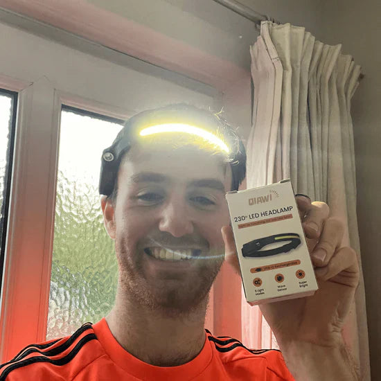 With a wide range of 230°, our LED headband will light up your surroundings much better than the normal headlamps.